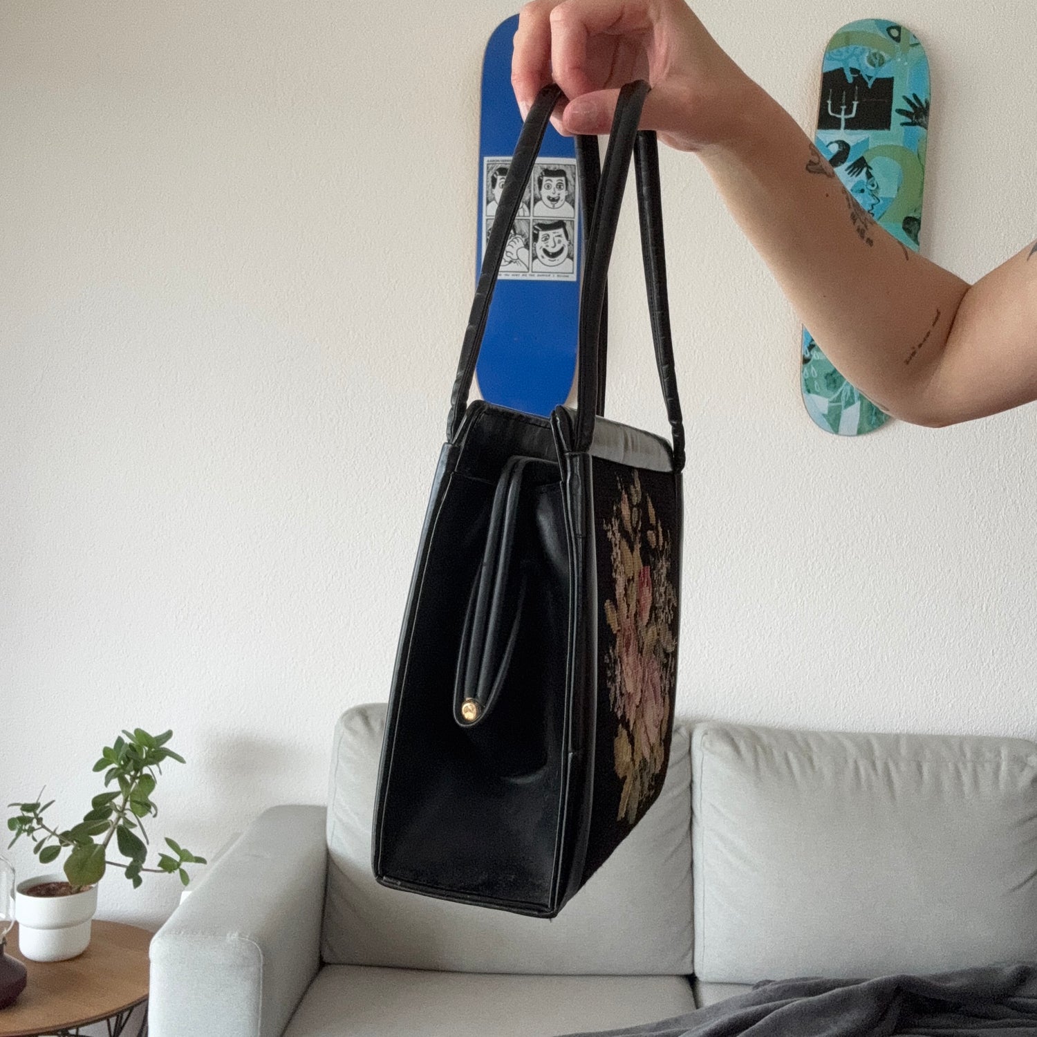 Black Bag / Purse with Flower Stitching | Bern