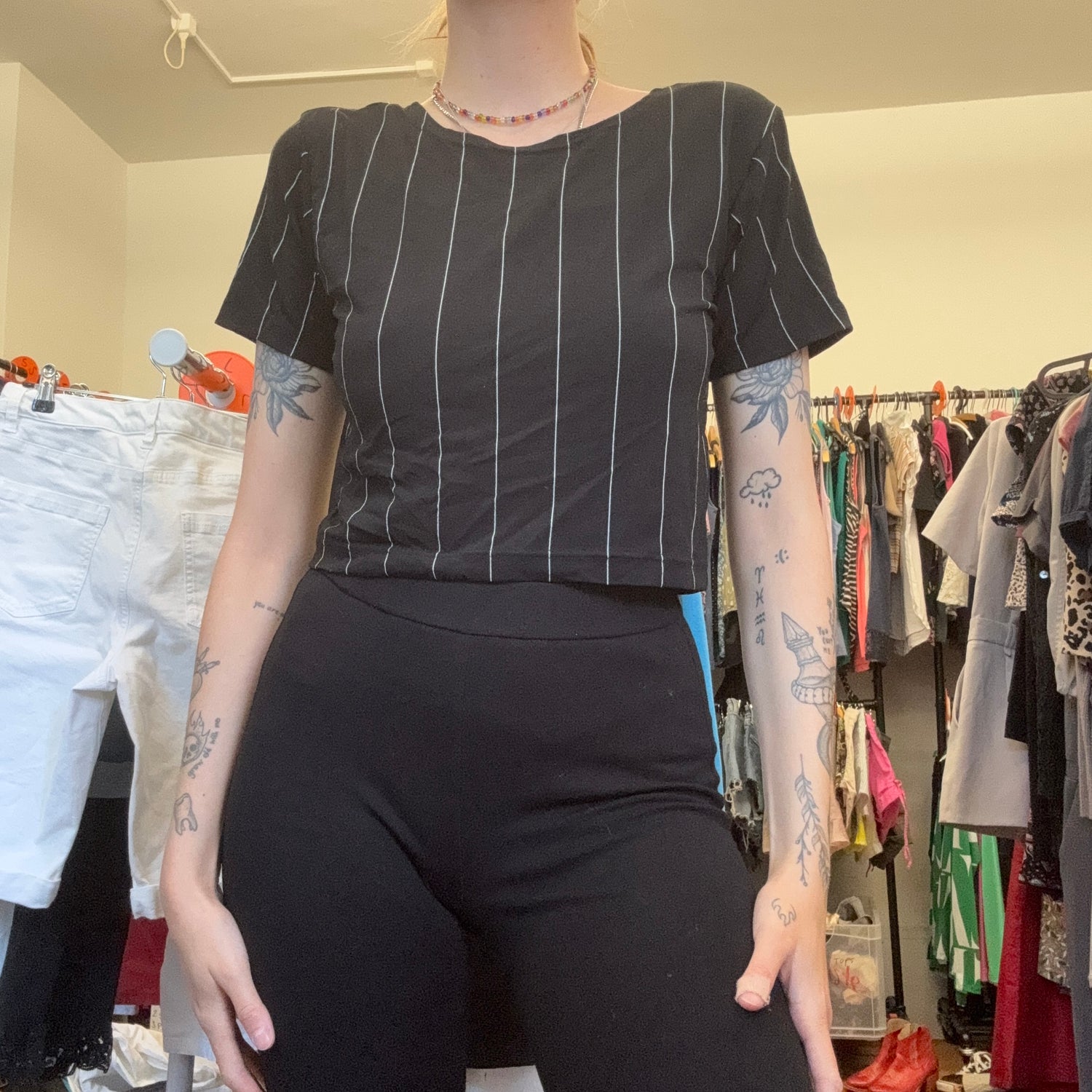 Black cropped Shirt with white stripes | Bern